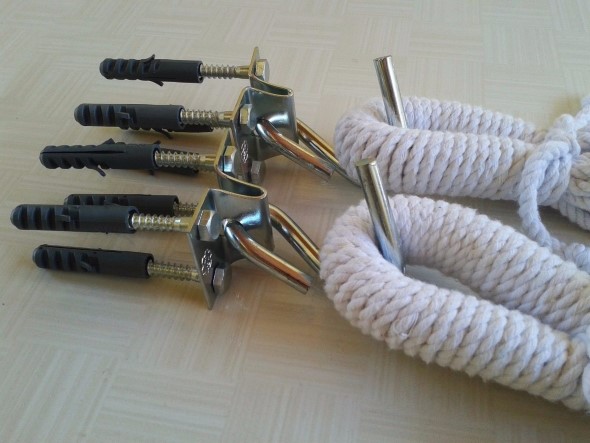 5. Faça os furos com a broca adequada, coloque as buchas de fixação, e em seguida aparafuse os ganchos que irão sustentar sua rede na varanda.