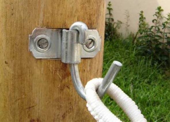 6. Os ganchos também podem ser fixados em colunas de madeira, e para isso veja na loja o suporte e os parafusos apropriados para esta fixação.