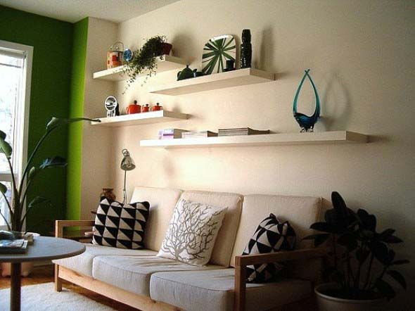 E para lhes ajudar, confiram abaixo mais algumas imagens, que mostram como usar prateleiras na decoração da sala de estar aí na sua casa: