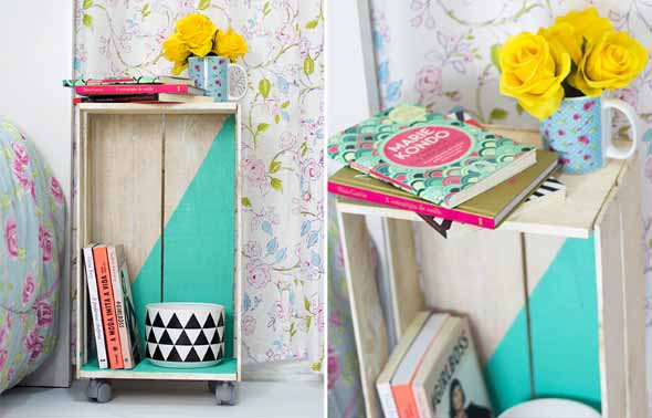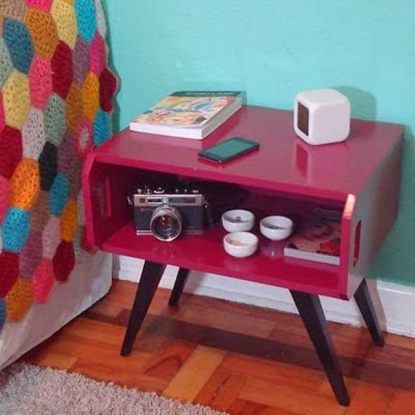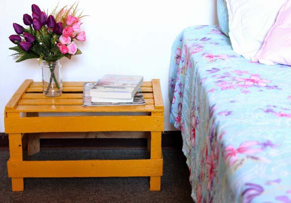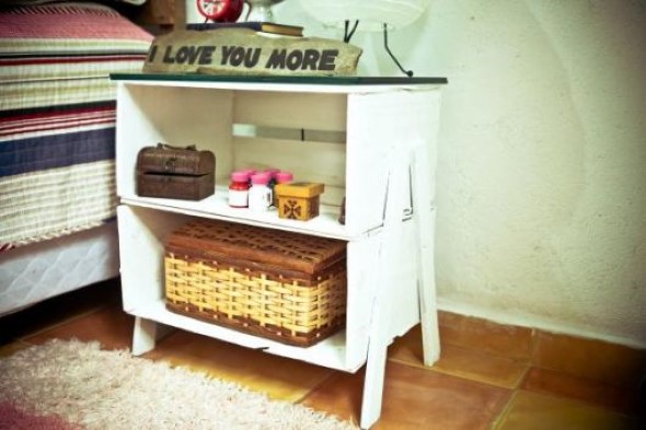 Um bom exemplo disso é a montagem do criado mudo de caixote, uma peça muito útil que pode servir como mesinha ou armarinho de cabeceira, e que pode ser deixada em todos os quartos pela casa.