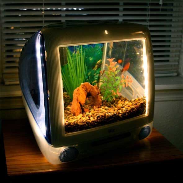 Outra opção é transformá-lo em um novo item, como um belo aquário, que pode ser montado com o gabinete de um computador, pelas mãos de uma artesã aí da sua cidade.