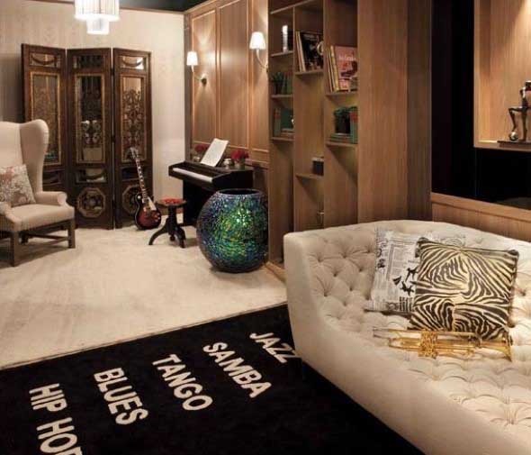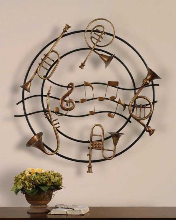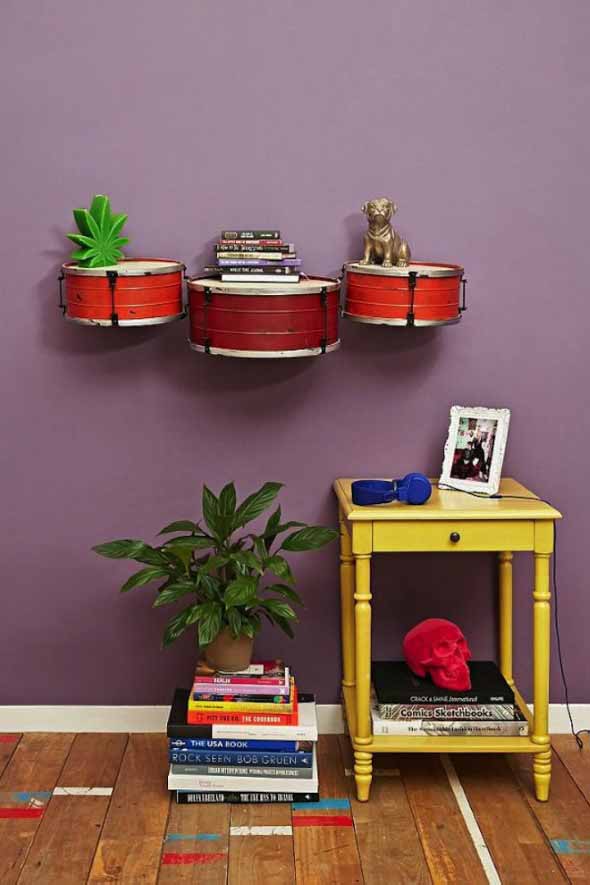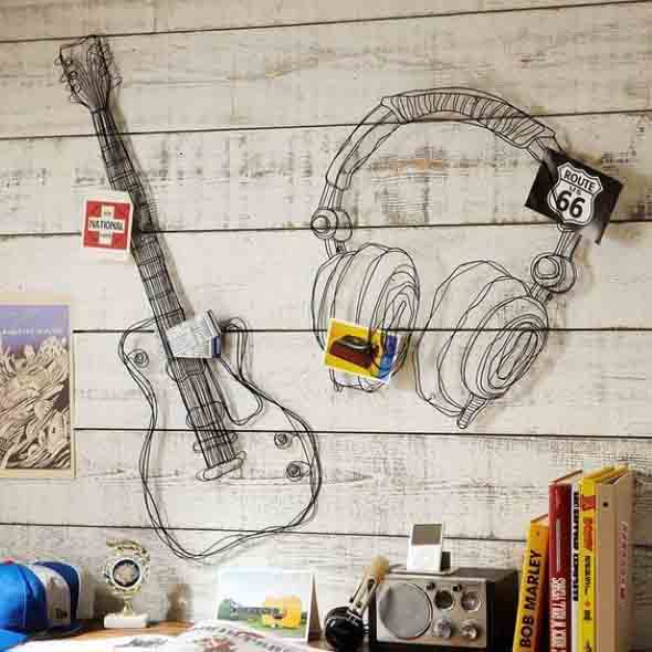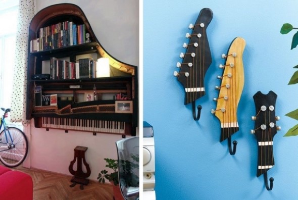 Outras ideias com o uso de instrumentos musicais também podem ser incorporadas na decoração, e vão garantir que o instrumento musical preferido de cada um esteja presente em cada cômodo da casa.