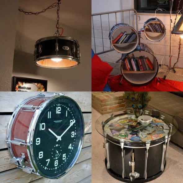Também é possível criar peças de arte com o uso de instrumentos musicais quebrados, que mesmo sem uso na música ainda podem ser bem aproveitados.