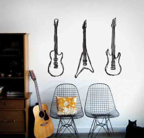 Já para quem curte instrumentos musicais, mas não tem muito dinheiro para investir, pode optar pelo uso de adesivos personalizados em formato de instrumentos, que são mais baratos e fáceis de aplicar em qualquer cômodo.