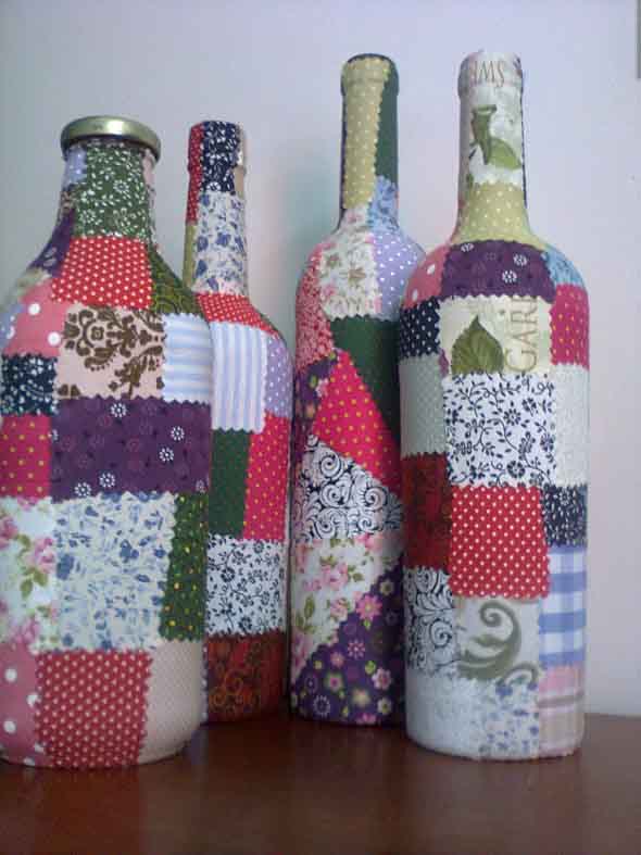 Peças artesanais, como garrafas decoradas, molduras e quadros, vasinhos de plantas, caixinhas de MDF, etc., também são personalizadas com o uso de retalhos de tecidos, e podem ser compradas em lojas, e sites de artesanato, como o Elo7.