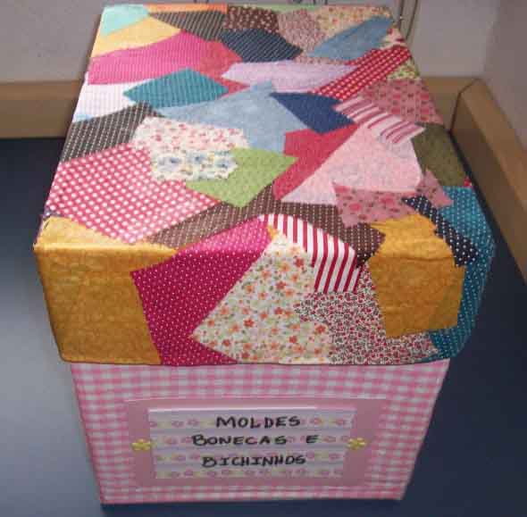 Até mesmo aquela caixa organizadora pode ser enfeitada com as técnicas de patchwork, e vão ficar com um estilo bem diferenciado e original.