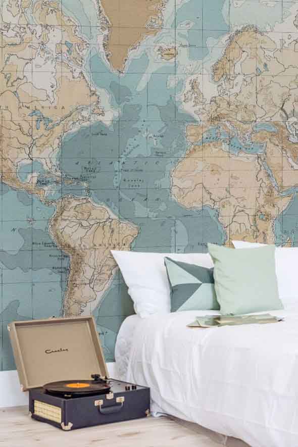 Com estas dicas, os quartos aí da sua casa vão se tornar um espetáculo, graças ao uso das imagens do mapa mundi na decoração.