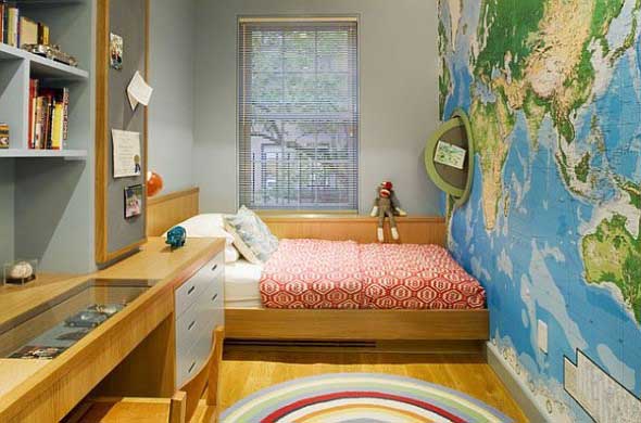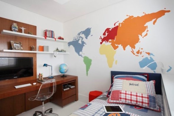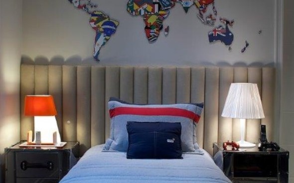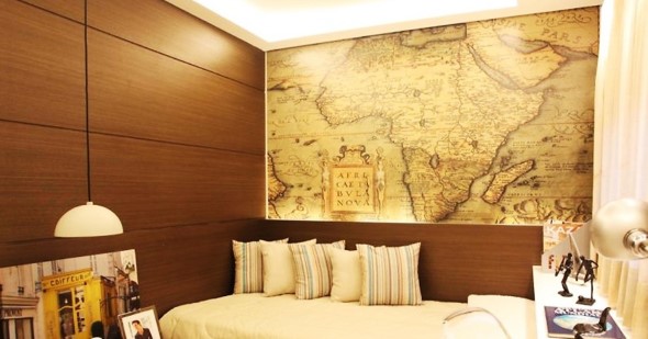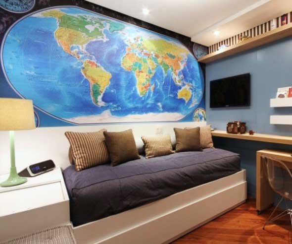E para lhes trazer mais inspiração, confiram abaixo mais algumas imagens, que mostram quartos decorados com imagens do mapa mundi: