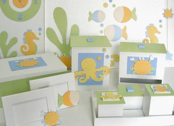 Em seguida é hora de comprar objetos em estilo praia para enfeitar o quarto do bebê, como quadros, kits de higiene, painéis de MDF, luminárias, móbiles, e muitos mais.