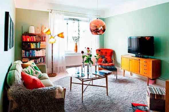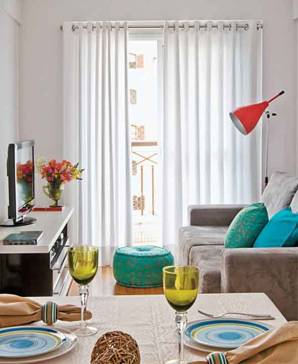 Uma das primeiras dicas para ter uma sala de estar charmosa e mais convidativa, gastando pouco dinheiro, é investir em objetos simples de decoração, como tapetes, quadros, vasos, almofadas, luminárias, etc.