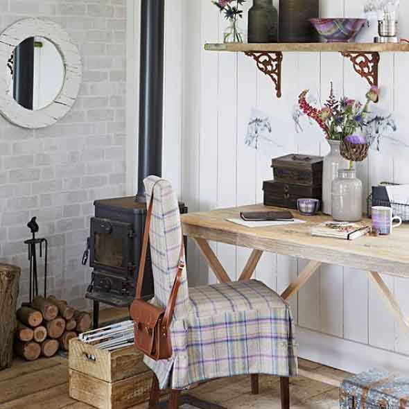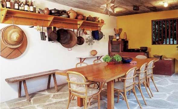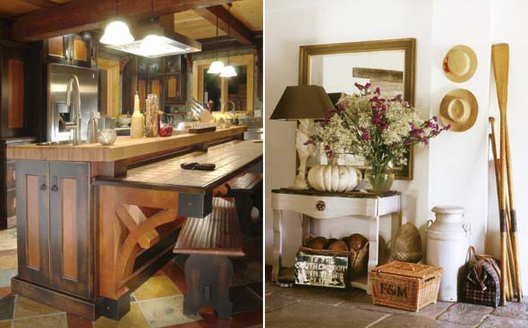 Para cozinha você pode investir nas porcelanas de época, e em panelas, bules e canecas de cobre ou metal, que remetem a simplicidade da vida no campo.