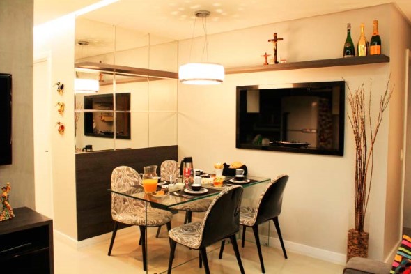 Outro elemento que ajuda a valorizar a decoração da sala de jantar é o uso de espelhos, que dão aquela sensação de amplitude ao local, além de transmitir elegância e sofisticação.
