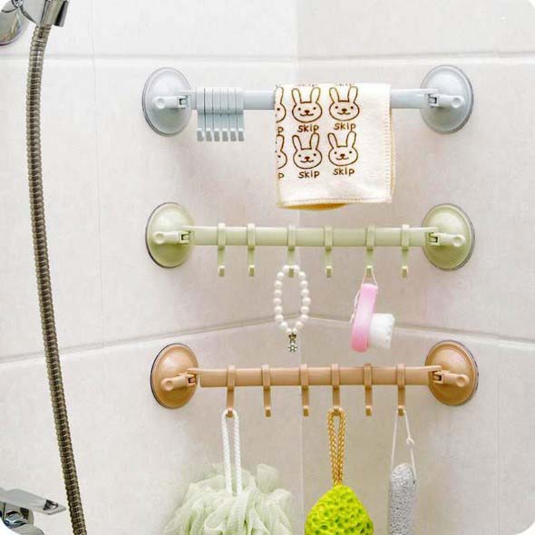 Outra dica muito útil dentro deste ambiente, é o uso de ganchos, cabideiros e cestinhos, que permitem pendurar objetos de uso diário, como toalhas, escovas ou buchas.