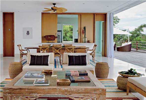O uso da madeira na decoração da casa de praia também é muito bem vinda, assim como objetos artesanais de sisal ou bambu, que são itens de decoração que transmitem uma sensação de paz e tranquilidade.