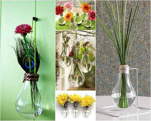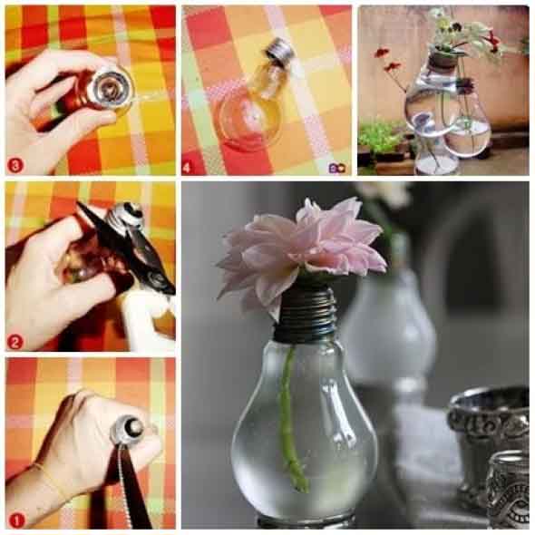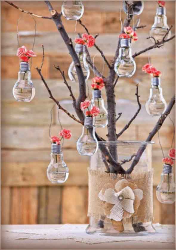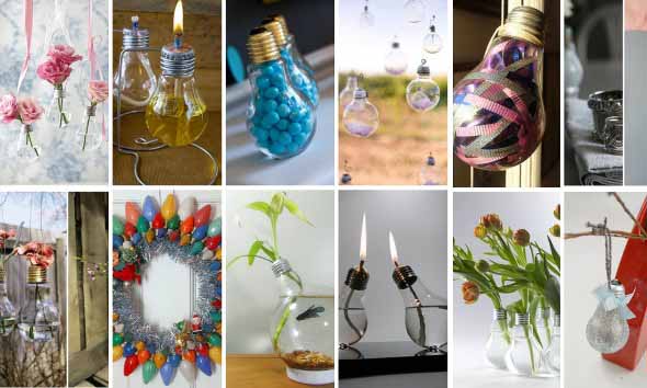 Confiram abaixo mais algumas imagens, que mostram outras formas de usar lâmpadas queimadas na decoração: