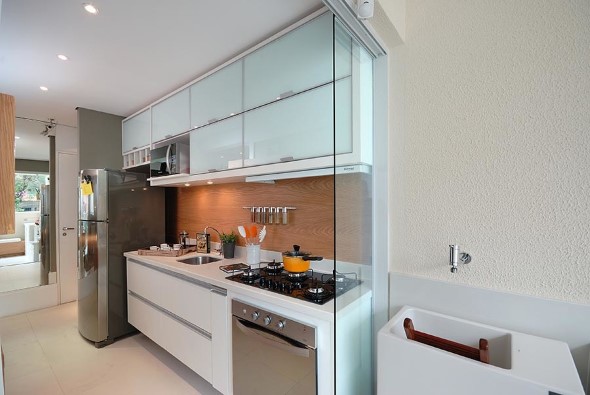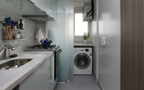 Como exemplo, elas podem ser colocadas na cozinha, para criar uma pequena área de serviço integrada e totalmente funcional, ou para criação de um closet discreto dentro do quarto.