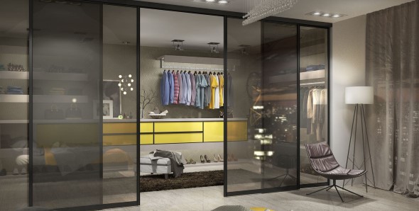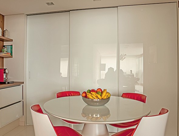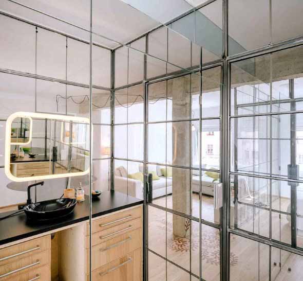 Em seguida, as divisórias de vidro podem ser montadas em diferentes estilos, que vão de um painel discreto até mesmo uma parede que separa ambos os cômodos, de acordo com sua necessidade de uso.