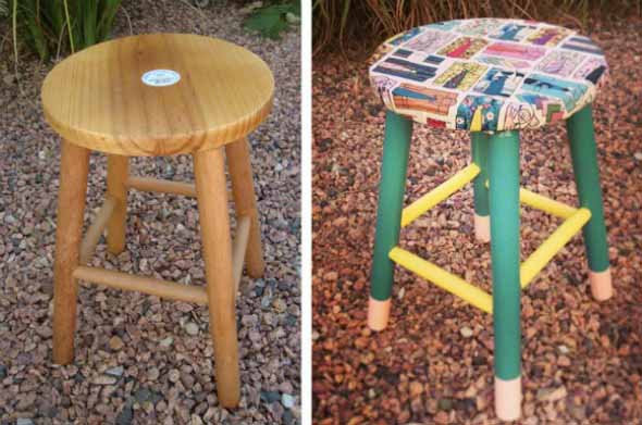 E para lhes trazer mais inspiração, confiram abaixo estas imagens, que mostram banquinhos de madeira reformados com o uso das técnicas DIY, que podem se tornar um hobby muito proveitoso e lucrativo: