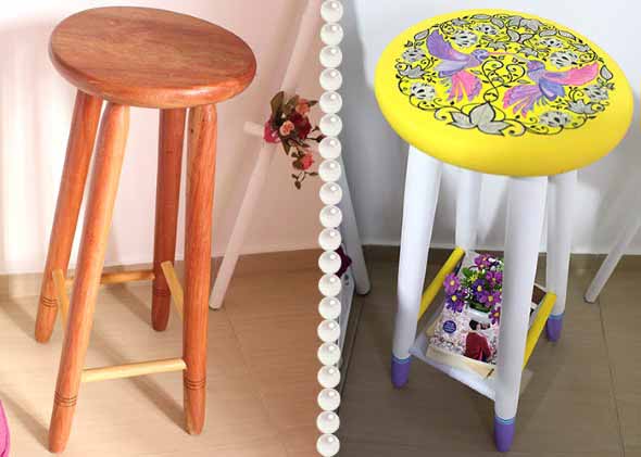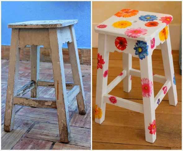 Depois é só pegar aqueles banquinhos mais velhinhos aí na sua casa, e soltar toda sua criatividade na hora de criar lindos modelos restaurados, que vão ficar charmosos em qualquer decoração.