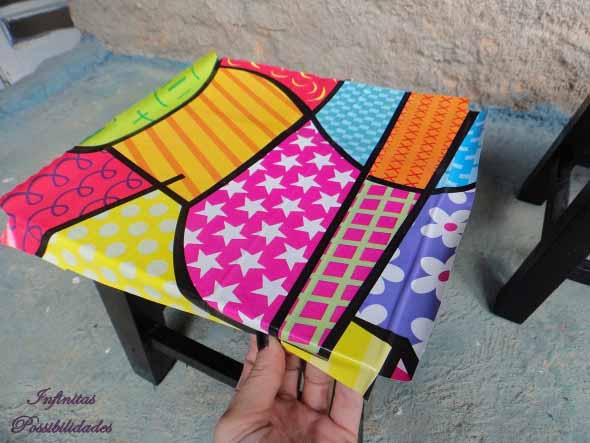 A reforma do banquinho de madeira pode ser feita de diversas maneiras, como uma nova pintura, a colagem de tecidos, a aplicação de papel contact, dentre outras.