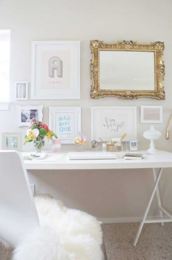 Um bom exemplo disso é o uso de espelhos na decoração do Home Office, que garantem uma sensação de mais espaço em qualquer canto da casa, e vão se tornar uma peça bem charmosa na decoração.