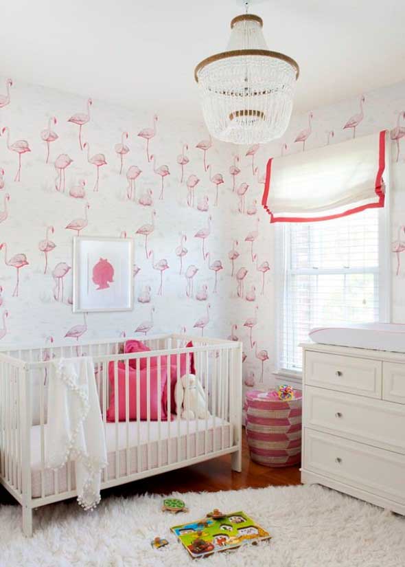 A tendência de usar flamingos na decoração é algo que se tornou um estilo mundial, e com isso é possível encontrar diversos motivos inspirados neste tema, como papéis de parede, cortinas ou tapetes, que aliados as cores do ambiente, formam um contraste muito encantador.