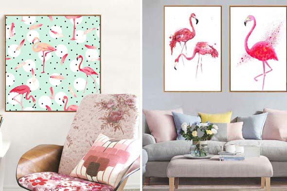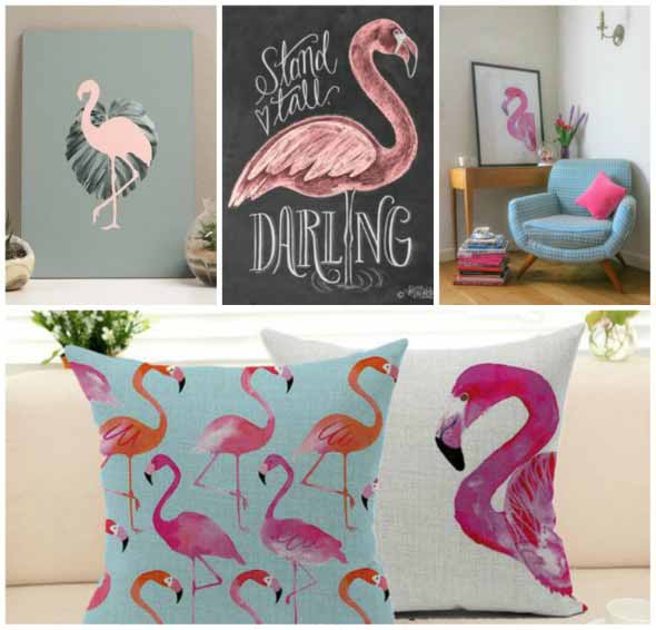 Imagens de flamingos usados na decoração
