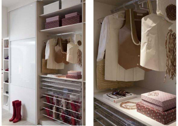 E abaixo vocês conferem mais algumas imagens que mostram como deixar o espaço dos armários bem organizados, para guardar todos os objetos do dia a dia, com facilidade e praticidade: