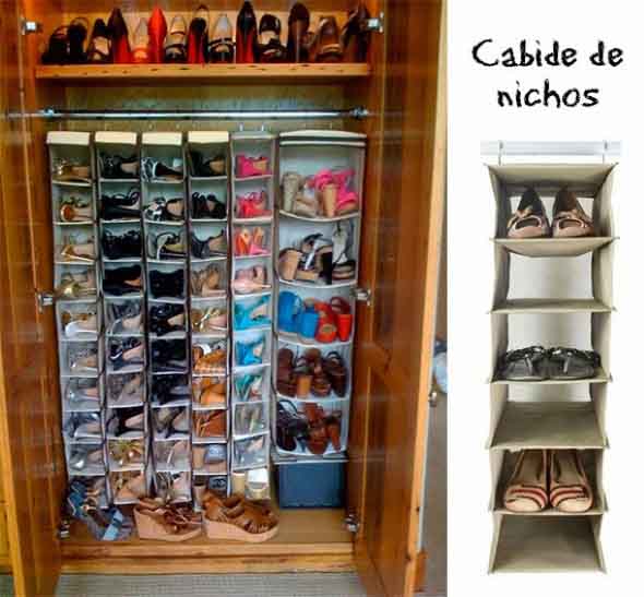 Para quem quer organizar sapatos e bolsas dentro do armário pode optar pela compra do cabide com nichos, uma opção prática e fácil de utilizar.