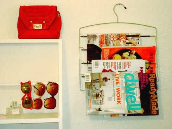 Os cabides também podem ser usados para penduras revistas no cantinho da sala, e com isso vai ficar muito mais fácil ter uma leitura agradável nos momentos de descanso.