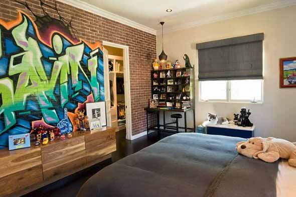 Em outros cômodos da casa o grafite também pode ser utilizado, em cores que combinem com cada estilo de decoração utilizado.