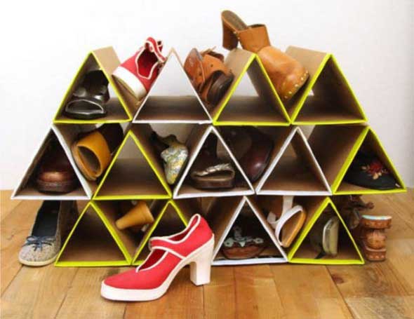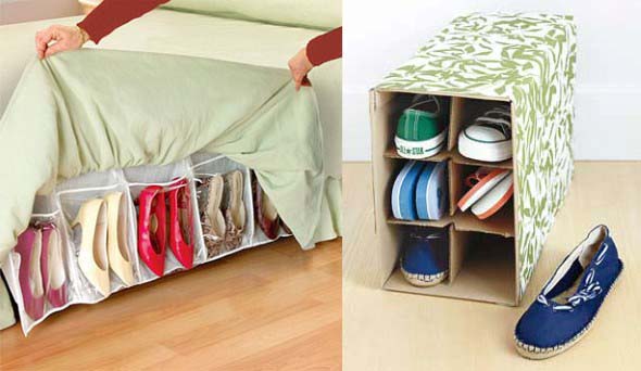 Imagens de sapatos guardados de forma criativa e bem organizada
