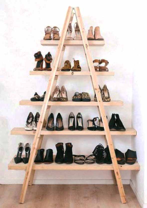 Mas além disto, você pode ter em casa um local bem criativo para deixar seus sapatos, e que pode ser feito de forma artesanal, com algumas ideias que separamos a seguir: