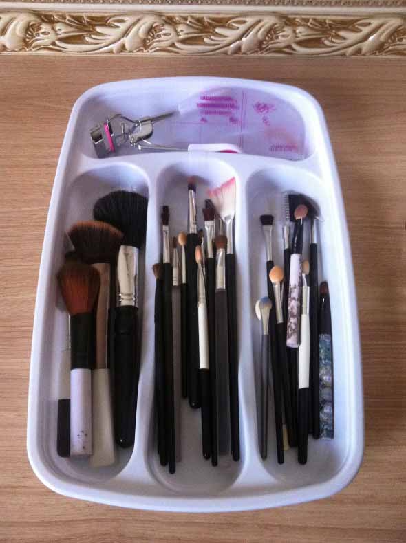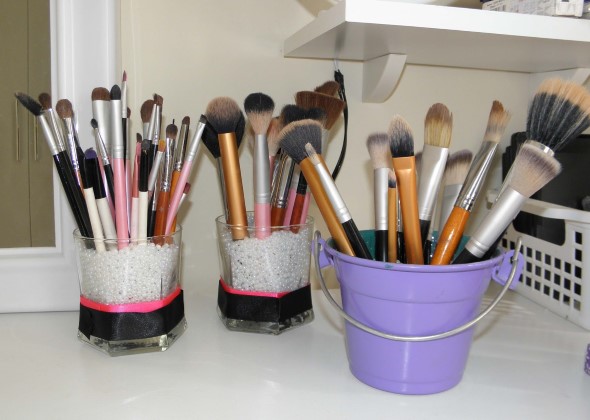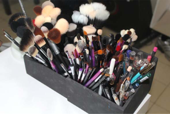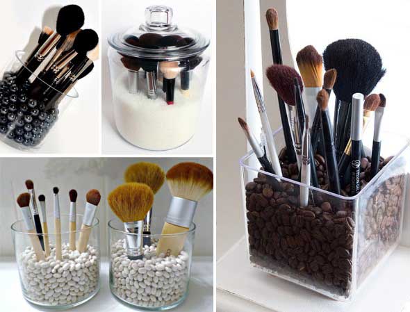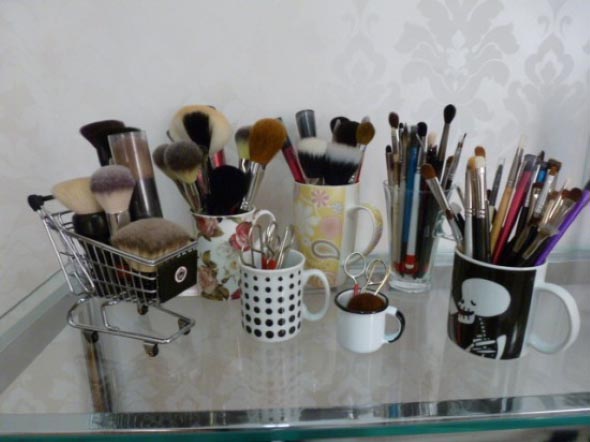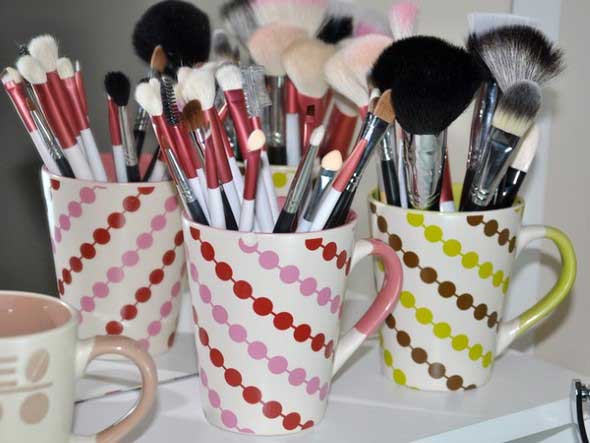 Um bom exemplo são os pincéis de maquiagem, que ao serem organizados com antecedência permitem que a maquiagem seja feita de forma mais eficaz, principalmente naquela agitação e correria do dia a dia.