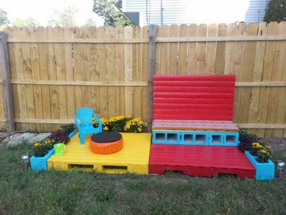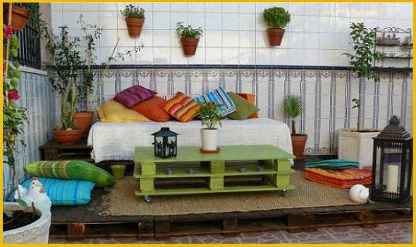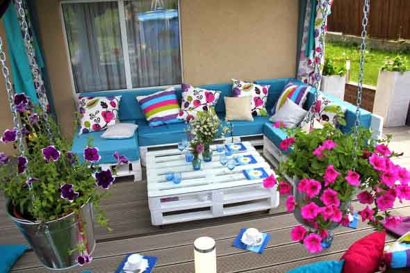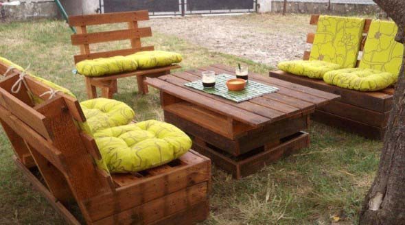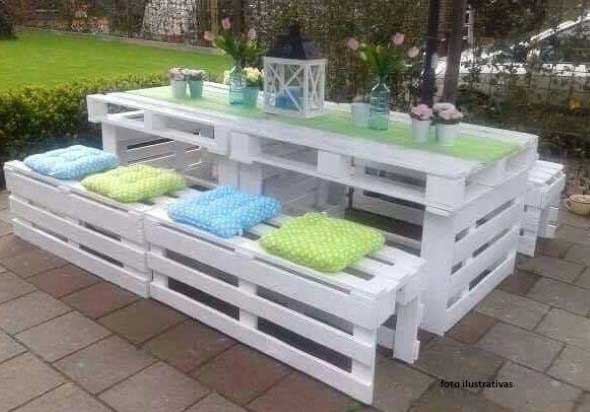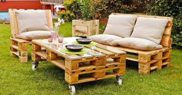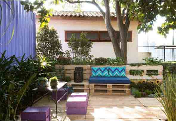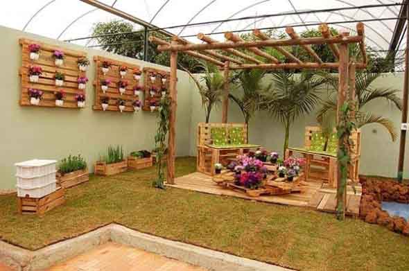 Imagens de paletes usados no jardim de casa