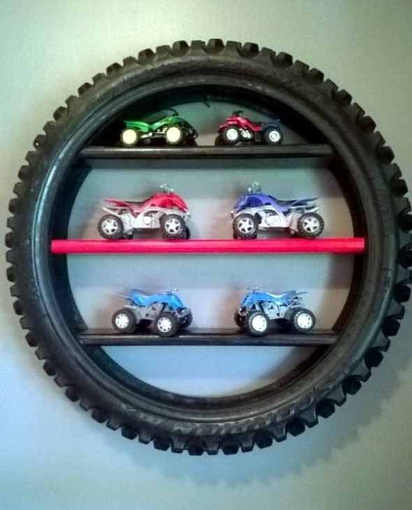 Os pneus usados também podem ser incorporados em peças de decoração, como a moldura de espelhos, que vai ficar muito mais charmosa com aquele pneu antigo de bike.
