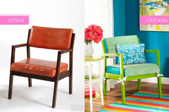 Com um pouco de tinta, tecido e criatividade dá para restaurar aquelas cadeiras e poltronas desbotadas, que vão se transformar em um lindo objeto de decoração.
