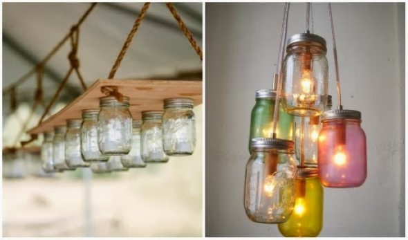 Neste outro vídeo, do canal A casa que a minha vó queria, vocês aprendem a fazer uma linda luminária pendente, com o uso de potes de vidro, e kits de iluminação (que podem ser comprados em lojas de material para construção):