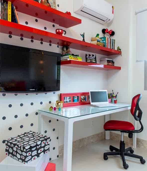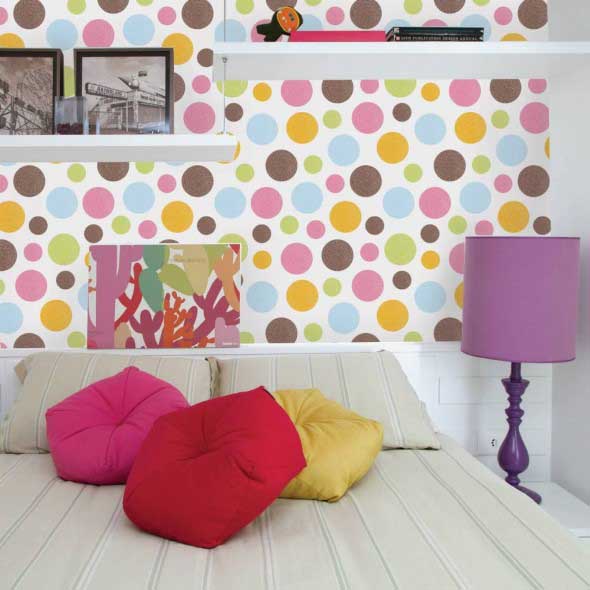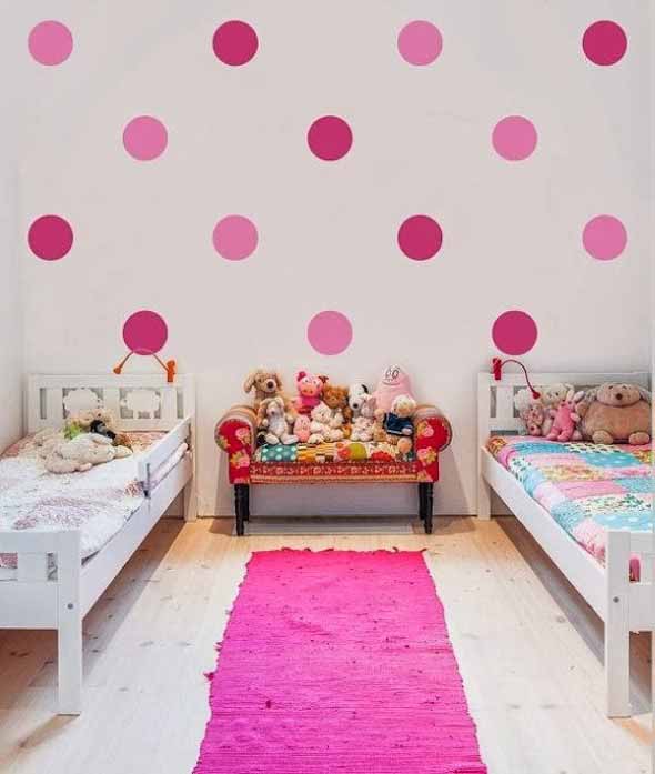 Neste estilo de decoração, o foco principal é o uso de bolinhas, em vários tamanhos e cores, que podem ser pintadas ou coladas nas paredes da sala, do quarto ou de outros cômodos, de maneira bem criativa.