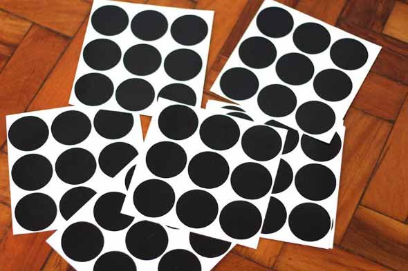 Uma ideia bem simples deste estilo é com o uso de bolinhas adesivas, que podem ser compradas já modeladas, ou feitas em casa com o uso de papel contact e um cortador redondo.