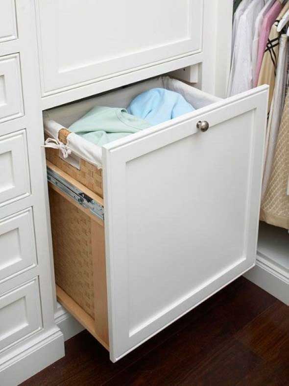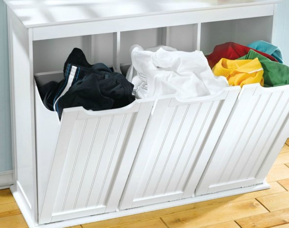 Com isso, o primeiro passo é a separação das roupas sujas, que pode ser feita em cestos (de plástico, fibra ou tecido), com separação de roupas claras e escuras, roupas de cama, e peças intimas.