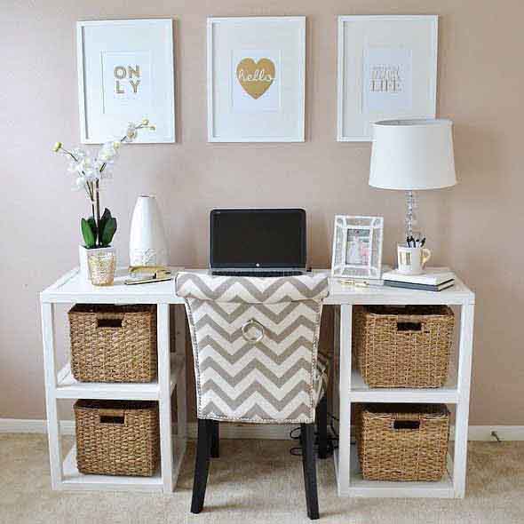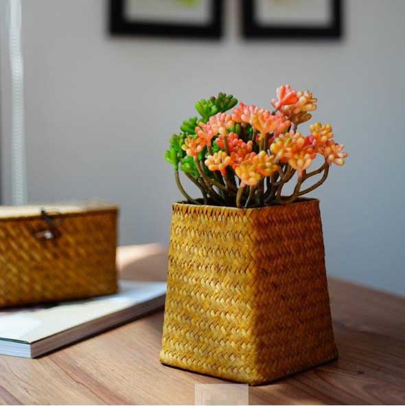 Os pequenos cestos também podem ser bem aproveitados na decoração, pois além de serem usados para colocar itens do dia a dia, ainda se tornam ótimas peças decorativas.