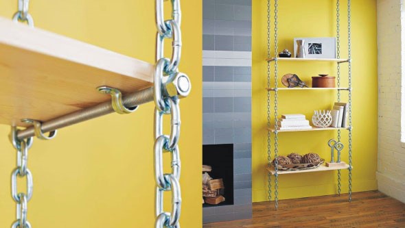Uma das primeiras ideias para usar correntes na decoração é a montagem de móveis suspensos com elas, como as prateleiras, mesas e camas pela casa.