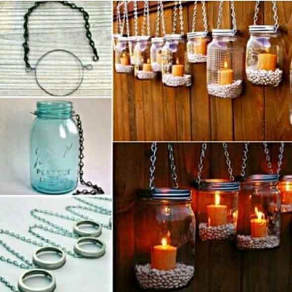 Até mesmo itens pequenos podem ser montados com correntes, como porta velas, molduras, vasos suspensos, etc., que podem ser usados em casa, ou até mesmo em festas ou eventos variados.
