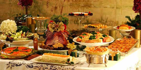 E dependendo do número de convidados, a mesa pode ser colocada em um ambiente mais amplo, e arrumada para que todos possam se servir, e tenham um espaço adequado para se sentarem na hora de fazer sua refeição.