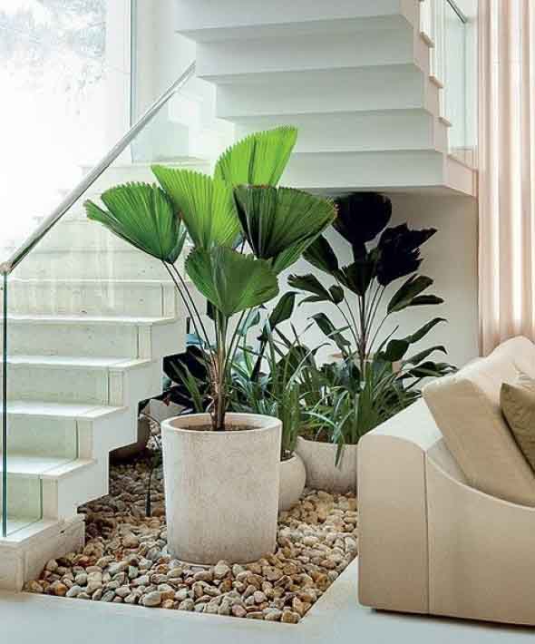 Modelos de jardins no vão da escada