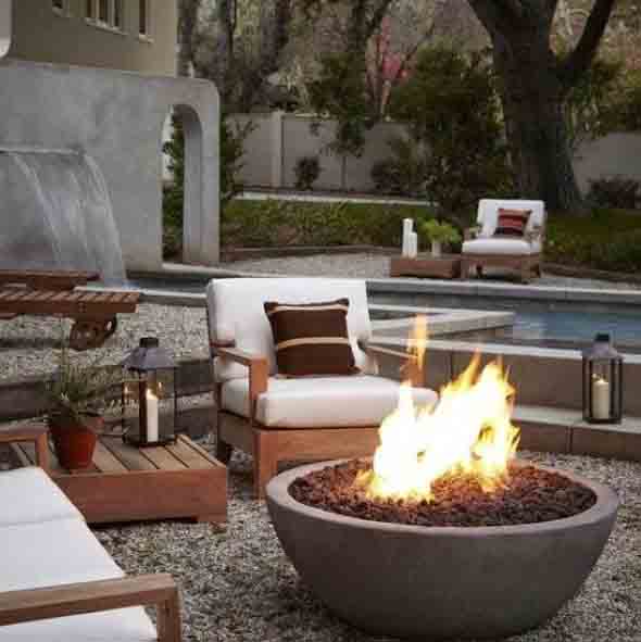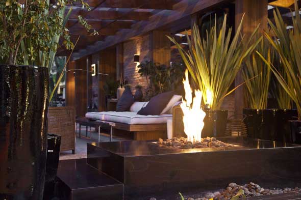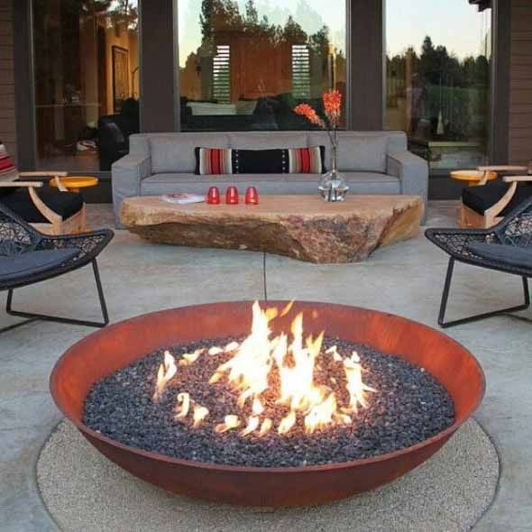 Outra dica é o uso das lareiras a gás, que são montadas com uma tubulação de gás embutida, que queima em um espaço com pedras, é prática de acender, e fica charmosa em qualquer ocasião.