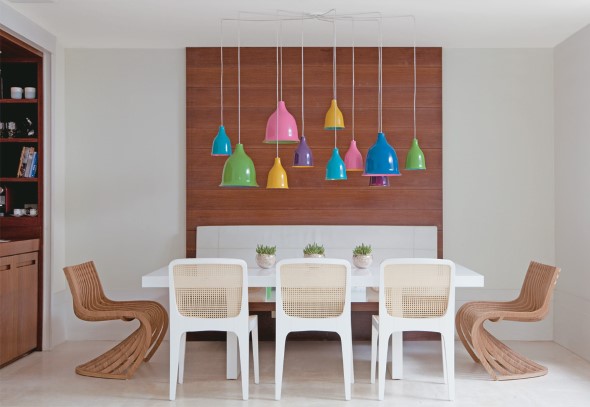 E para lhes trazer ainda mais inspiração, confiram abaixo mais alguns modelos de luminárias e pendentes coloridos na decoração:
