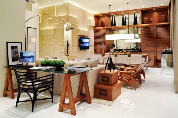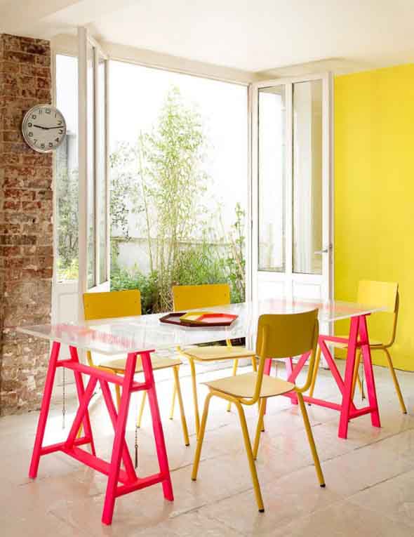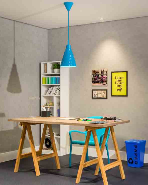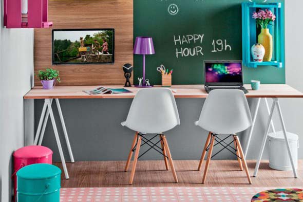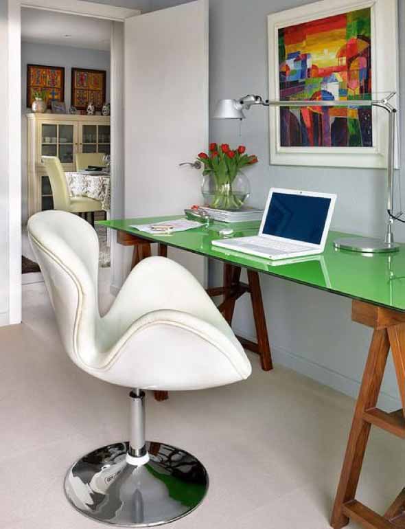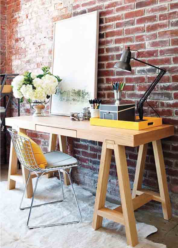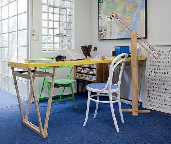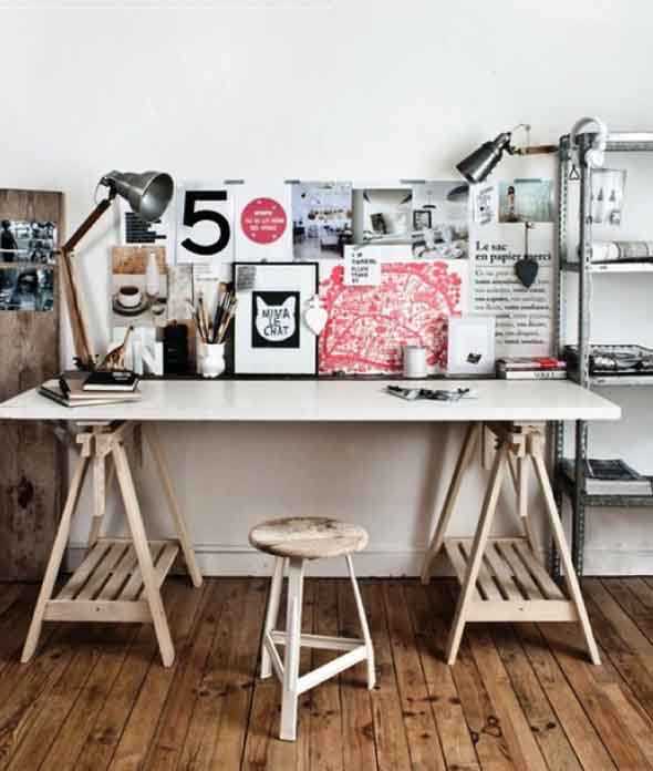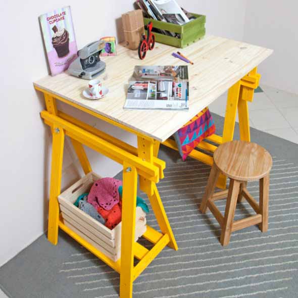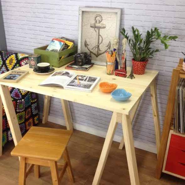O mais legal é que a mesa com cavaletes ocupa pouco espaço, e com isso vai se encaixar perfeitamente no visual de cada cantinho da casa, de uma forma eficiente e bem funcional.