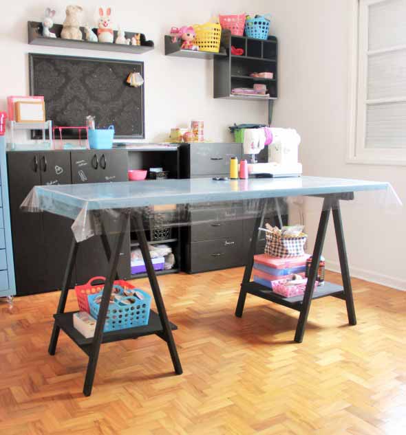 Utilizando mesa com cavaletes em casa